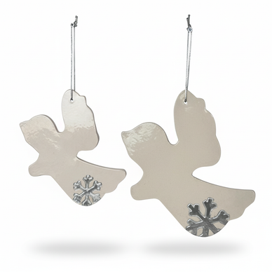 melek formunda hazırlanmış bu duvar süsü seti yaklaşık 20 ve 10 cm.'lik iki parçadan oluşmaktadır. yılbaşı temasına uygun renklerde sırlanmıştır. küçük boyu çam ağacına asmak için de uygundur.
