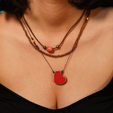 3 sıralı kolye | kalp (kırmızı)