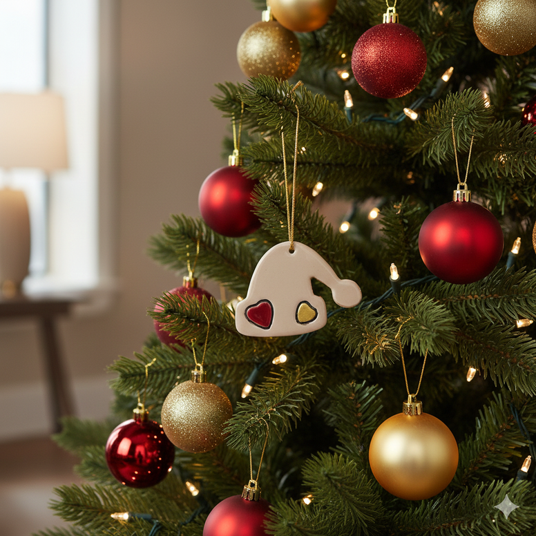 şapka formunda hazırlanmış bu duvar süsü yaklaşık 10 cm.'dir. yılbaşı temasına uygun renklerde sırlanmış olan ürün kırmızı ve altın yaldız ile tamamlanmıştır.