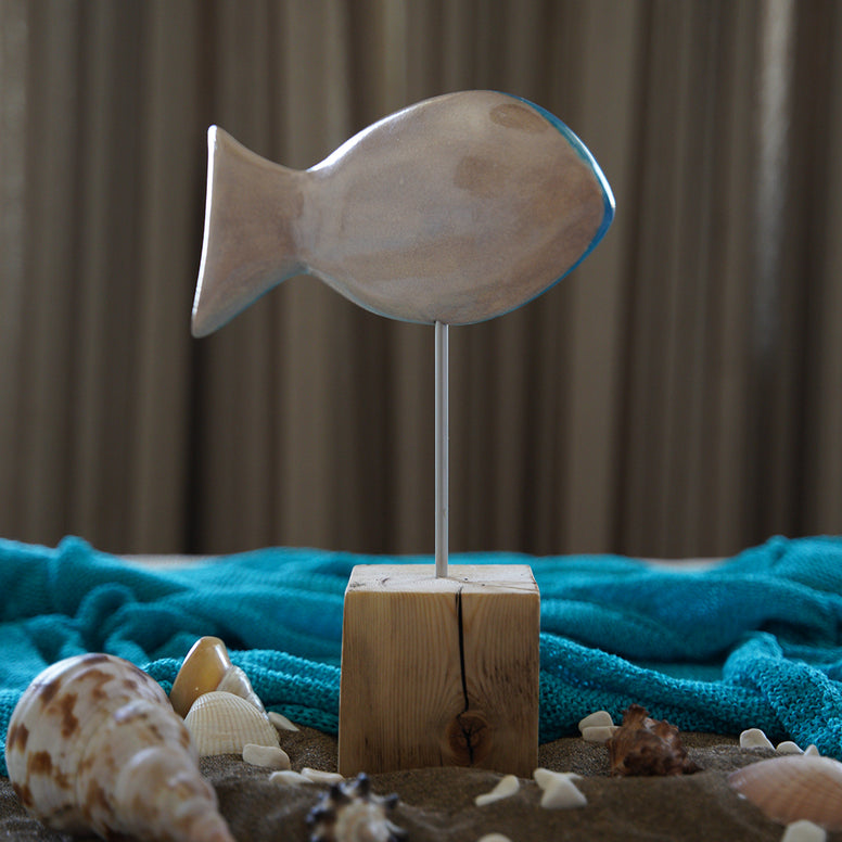 balık heykeli | mavi-krem