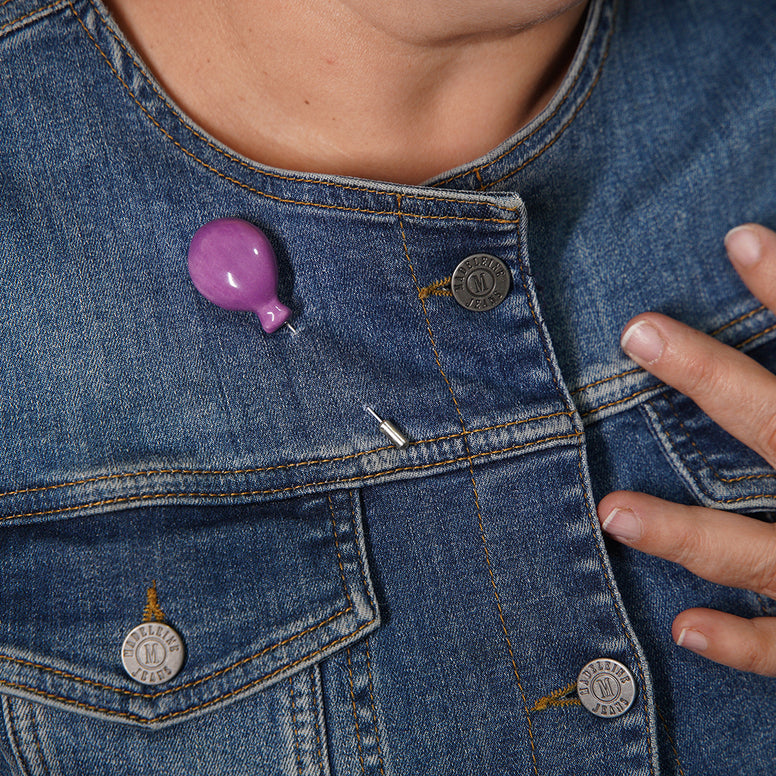el yapımı, özel tasarım balon broş. beyaz seramik çamuruyla üretilmiştir. 1040 derecede pişirildikten sonra her broş farklı renkte parlak opak sırla sırlanıp tekrar 1040 derecede pişirilmiştir. yüksek derecede fırınlanma işlemi sayesinde renklerde ve dokuda herhangi bir deformasyon yaşanmaz. nikel kaplama broş iğnesinde kararma ve paslanma oluşmaz.