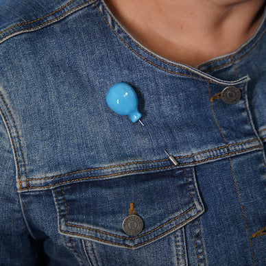 el yapımı, özel tasarım balon broş. beyaz seramik çamuruyla üretilmiştir. 1040 derecede pişirildikten sonra her broş farklı renkte parlak opak sırla sırlanıp tekrar 1040 derecede pişirilmiştir. yüksek derecede fırınlanma işlemi sayesinde renklerde ve dokuda herhangi bir deformasyon yaşanmaz. nikel kaplama broş iğnesinde kararma ve paslanma oluşmaz.
