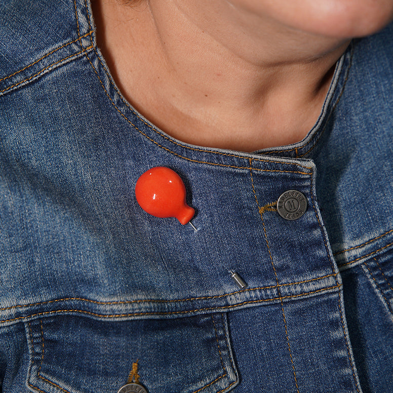 el yapımı, özel tasarım balon broş. beyaz seramik çamuruyla üretilmiştir. 1040 derecede pişirildikten sonra her broş farklı renkte parlak opak sırla sırlanıp tekrar 1040 derecede pişirilmiştir. yüksek derecede fırınlanma işlemi sayesinde renklerde ve dokuda herhangi bir deformasyon yaşanmaz. nikel kaplama broş iğnesinde kararma ve paslanma oluşmaz.