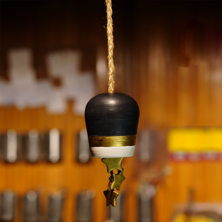 üç adet seramik yıldızdan oluşan çanın çıngırağı altın yaldızla boyandıktan sonra boyanın darbelere karşı koruması için vernik uygulanmıştır.