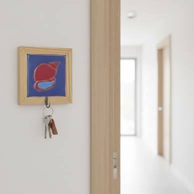 cuerda seca yöntemiyle, 10x10 seramik karolardan üretilmiştir. 2 cm. genişliğinde ahşap çerveye sabitlenmiş, ön yüzünde asma kancası, arka yüzünde duvara sabitlemek için asma halkası bulunmaktadır.