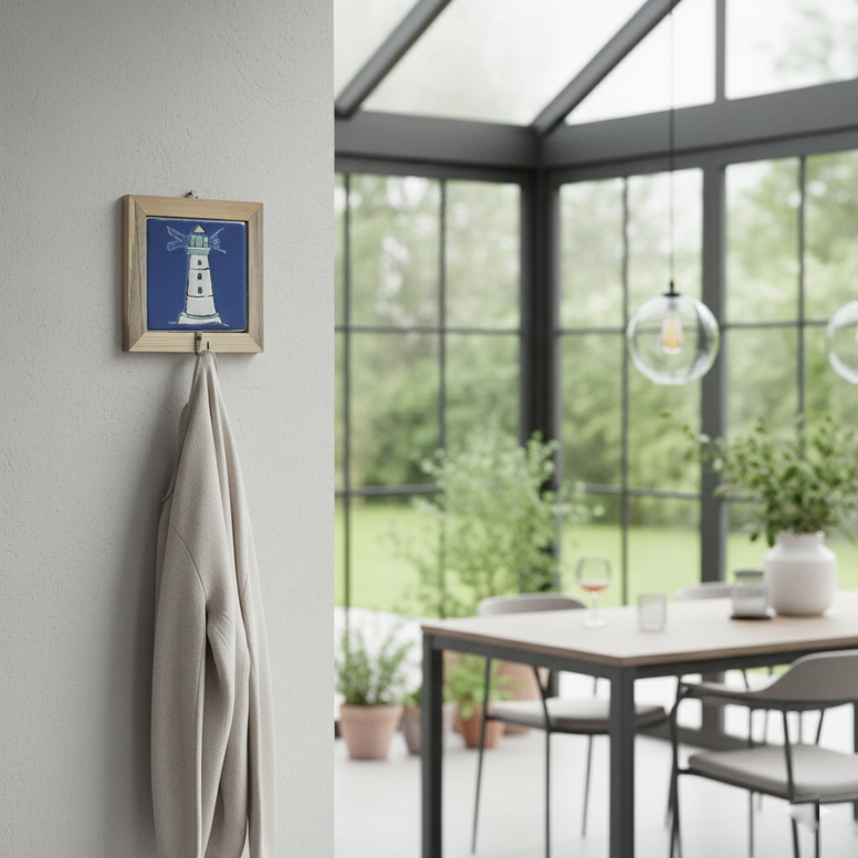cuerda seca yöntemiyle, 10x10 seramik karolardan üretilmiştir. 2 cm. genişliğinde ahşap çerveye sabitlenmiş, ön yüzünde asma kancası, arka yüzünde duvara sabitlemek için asma halkası bulunmaktadır.