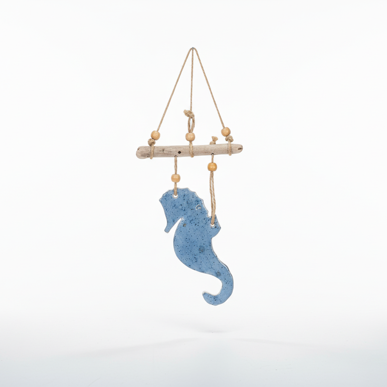 lodos tahtasına asılı olarak tasarlanan bu duvar süsü, denizatının yüzme hareketleri göz önünde bulundurularak konumlandırılmıştır. efektli mavi tonlarındaki sır denizin doğal dokusunu yakalamak amacıyla kullanılmıştır.