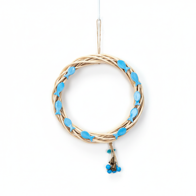 10 adet seramik balıkla dekore edilmiş olan kapı süsü, balıklarla aynı renk seramik boncuklar, püskül ve el yapımı pirinç zille tamamlanmıştır.