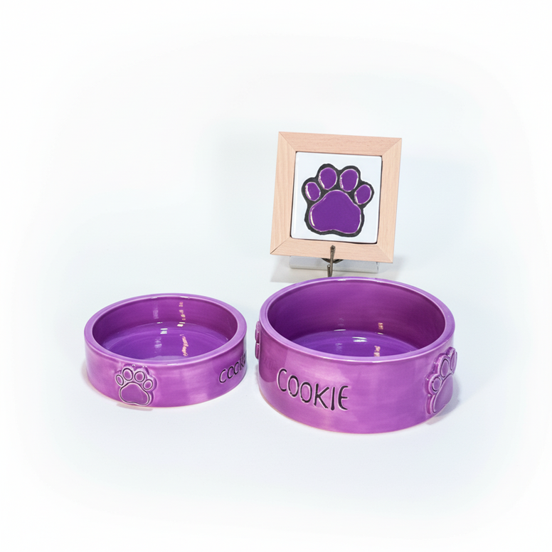 mama ve su kabı olarak iki farklı boyda üretilmiş olan el yapımı seramik mama kapları pati deseniyle tasarlanmıştır. gıdaya uygun sırlarla dekorlanmış olan bu kapları patili dostunuz için güvenle kullanabilirsiniz.