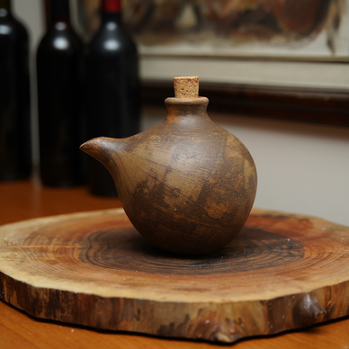 stoneware çamurdan üretilen yağlık yaklaşık 15 cm. boyutundadır. mat sırla sırlanan yağlık mantar tıpayla tamamlanmıştır.