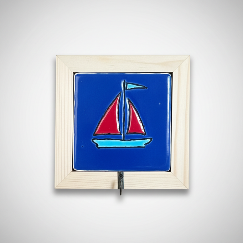 cuerda seca yöntemiyle, 10x10 seramik karolardan üretilmiştir. 2 cm. genişliğinde ahşap çerveye sabitlenmiş, ön yüzünde asma kancası, arka yüzünde duvara sabitlemek için asma halkası bulunmaktadır.