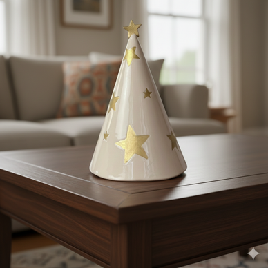 stilize edilmiş yılbaşı çam ağacı altın yaldızlı yıldızla bezenmiştir... ikinci görseldeki metal disk 30 cm. çapındadır ve ürün büyüklüğünü görebilmeniz için bırakılmıştır...