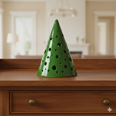 stilize edilmiş yılbaşı çam ağacı, altta yer alan seramik tabla sayesinde tea light kullanımına uygundur... ikinci görseldeki metal disk 30 cm. çapındadır ve ürün büyüklüğünü görebilmeniz için bırakılmıştır...